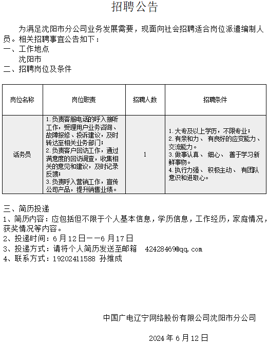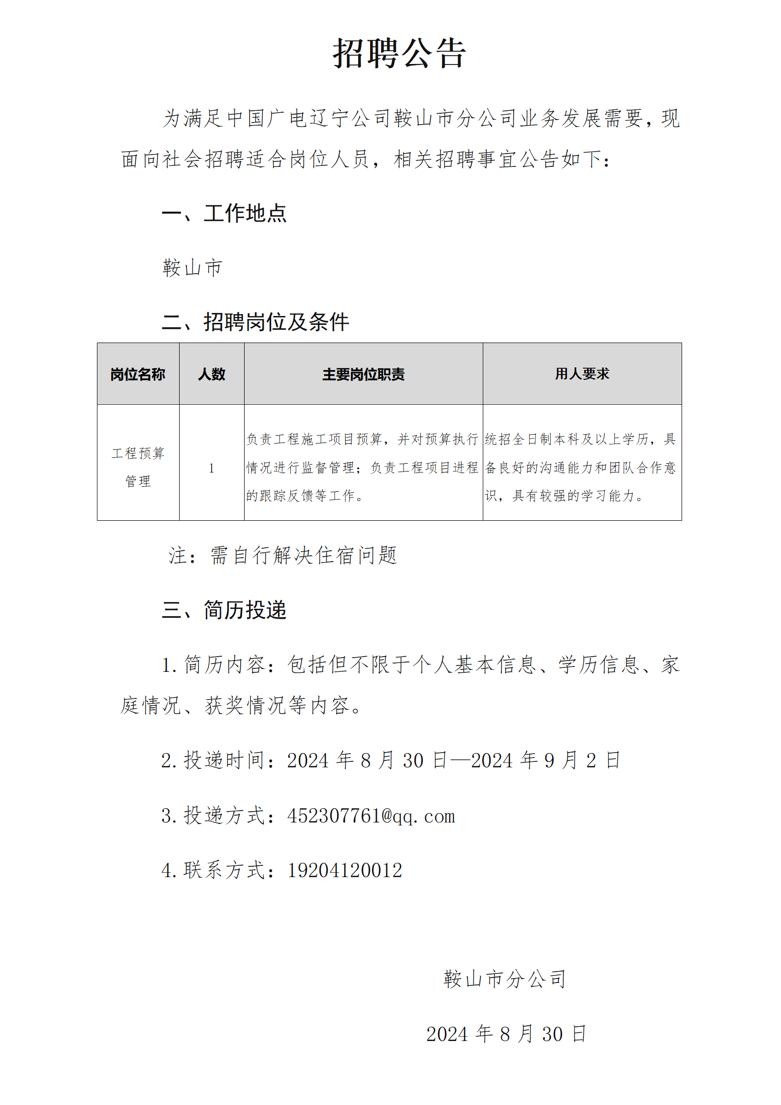 聯(lián)系人:遼寧公司鞍山市分公司 簡(jiǎn)歷投遞郵箱:452307761@qq.com