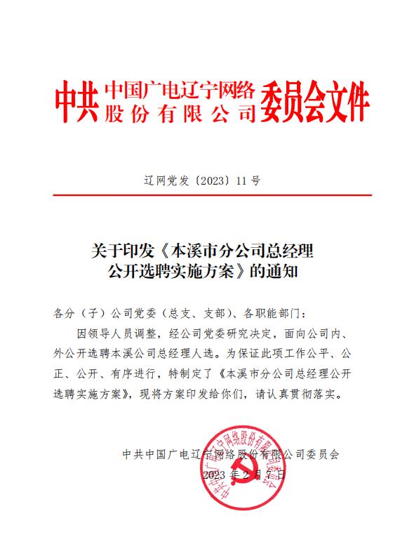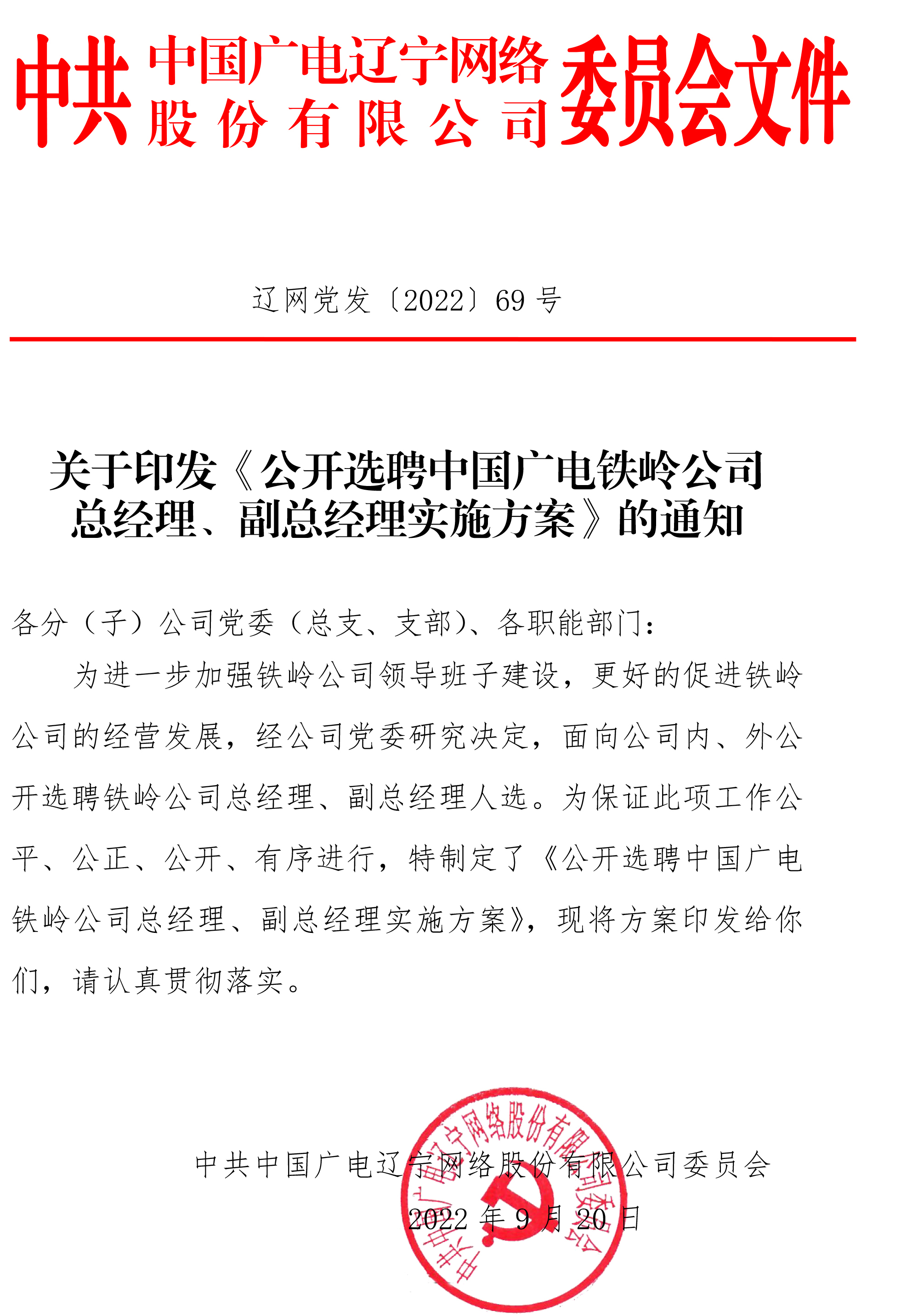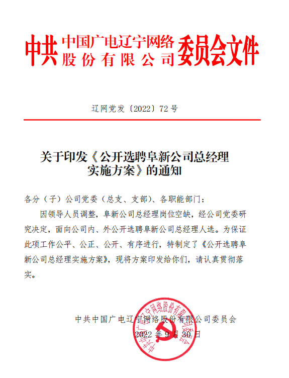 依據(jù)《公司中層領(lǐng)導人員管理暫行規(guī)定》(遼網(wǎng)黨發(fā)〔2021〕3 號)的相關(guān)規(guī)定,經(jīng)公司黨委研究決定,面向公司內(nèi)、外公開選聘阜新公司總經(jīng)理人選。具體方案如下: